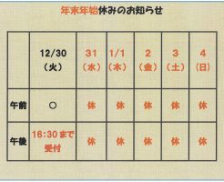 〇12月20日(土) 耳鼻咽喉科 〇12月30日(火) 眼科 上記の診療は休診となります。